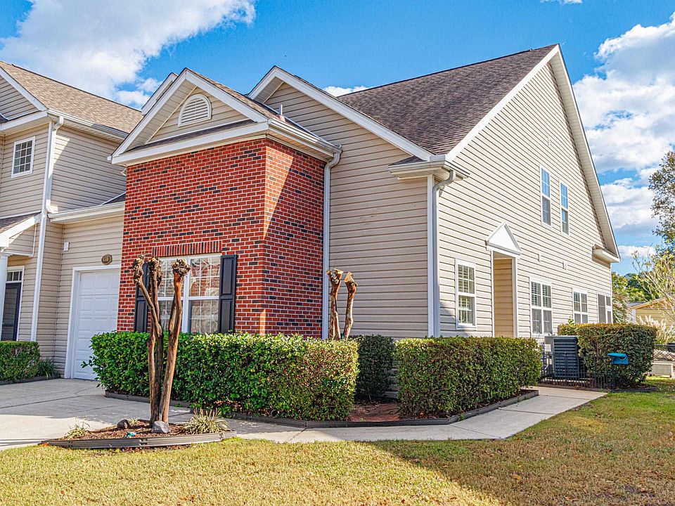 Rare opportunity, spacious end unit in an ideal location. This stunning 3-bedroom, 2-bathroom 1 1/2 bath, home offers a perfect blend of size, layout, and location – an unbeatable combination! The expansive living room features soaring vaulted ceilings, creating an airy, open feel. The end-unit design brings in extra natural light, with additional windows that brighten the space. Enjoy ultimate convenience with a private garage and ample storage throughout, including a screened-in porch perfect for relaxing or entertaining. The beautifully appointed kitchen is a chef's dream, with custom cabinetry, sleek stainless steel appliances, a wine/coffee bar, and luxurious granite countertops. This home is ideally positioned in the back of the charming Willoughby Place community, right across from the community pool, offering a tranquil setting just a mile from the beach. Located off Grissom Parkway and 44th Ave N, you'll be minutes from all the best that Myrtle Beach has to offer – shopping, dining, and entertainment. With its generous square footage, abundant storage, and garage, this is a rare find at this price point. Don’t miss out on this exceptional property – schedule your showing today!