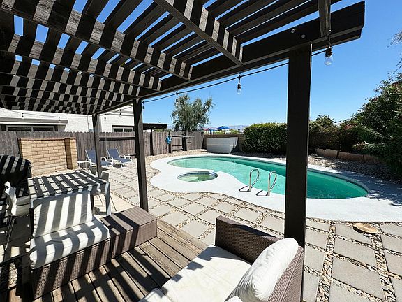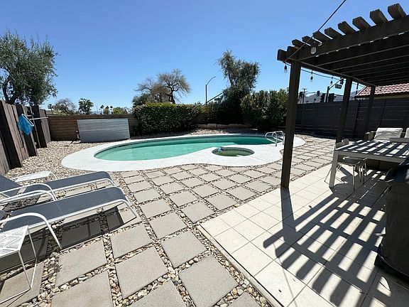 VIEWINGS BY APPOINTMENT EVERY SATURDAY Spacious and bright townhome in cul-de-sac with PRIVATE POOL in quiet neighborhood. Two generous sized bedrooms that are separated by a large open living room area, with kitchen and dining area that opens out onto a covered patio, private pool and hot tub. The large master bedroom has an en-suite bathroom and walk in closet, as well as sliding doors out onto patio and pool area. Tiled floors with carpeted bedrooms. Large attached double garage with lots of storage cabinets. Walking distance to Civic center park, with tennis and Aquatic center. Close to El Paseo shops and dining. Owner pays basic cable, internet. Renter pays all other utilities; gas, electric, water, trash, pool cleaning and yard maintenance. Minimum 12 month lease. Will consider small dog for additional deposit.