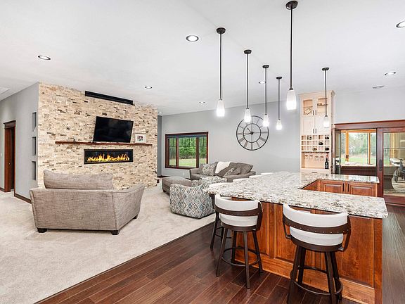 WOW WOW WOW! This incredible rural home has everything you could need and so MUCH MORE! Unbelievable custom finishes boast nearly 10,000 sq ft of living space. No detail has been overlooked. The luxury kitchen offers wolf appliances, oversized sub zero fridge, double hard surface islands and walk in pantry! Entertaining family and friends is no problem at all with the ice cream parlor with root beer hookup and built in booth, huge game room and theater, and the indoor pool with sauna and hot tub! The main floor is complete with workout room, half bath, spacious living room with fireplace, sunroom offering built in grill, formal dining room, and the primary suite featuring a huge soaker tub, double vanity sinks, and separate shower. Don’t miss the secure walk in vault!! The second floor provides 3 additional bedrooms all with walk in closets, and not one but TWO recreational rooms. Park all your toys and vehicles in the attached 4 car garage or the detached 40x50 garage with super sized door, perfect for campers or large boats. With nearly 30 acres of privacy and trails, surrounded by The West Two River, this luxury estate has everything you’ve been dreaming of.