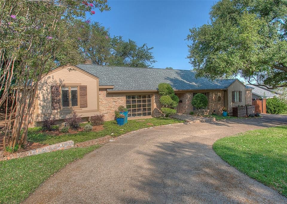 Updated split level home in Ridglea Hills steps away from Luther Lake! Circular drive and new landscaping welcome you to this lovely home. Numerous windows with Plantation shutters. Oversized lot with a sparkling, salt water pool and large backyard grass area. Three living areas. Formal living and dining. Den has vaulted ceilings, fireplace and wet bar. Separate breakfast room overlooking pool. Third living area is loft game room. Large, screened back porch 26x8- with ceiling fans. Huge master with 3 closets. Second and third bedrooms are large and share a hall bath. Fourth bedroom is split with updated bath and a Murphy bed. 2020-10-29