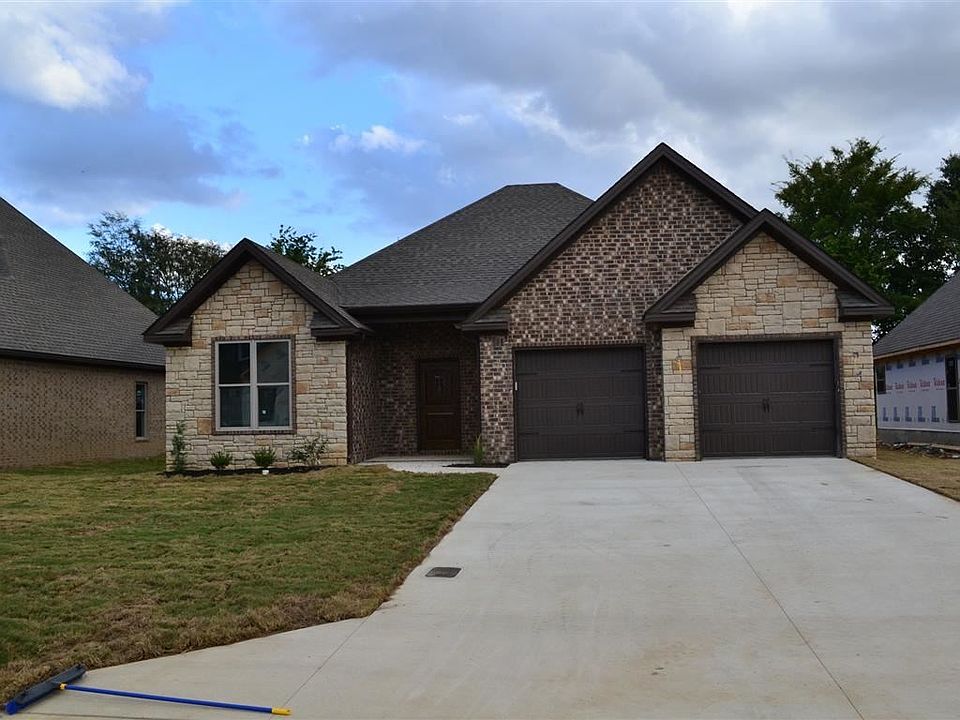 LVT (PVC) based flooring in living, kitchen and master bedroom. This flooring is impervious to water and extremely wear resistant. Cabinets are soft close and tops are granite throughout the home. The windows are a grade above your typical builder grade. the rock on front is a great accent to this brick. Also notice the rock from floor to vaulted ceiling on the fireplace in the open living area. Walk out to a very large covered porch with four brick columns. A great home at a great price. 90% complete. This home is 2 weeks from completion.
