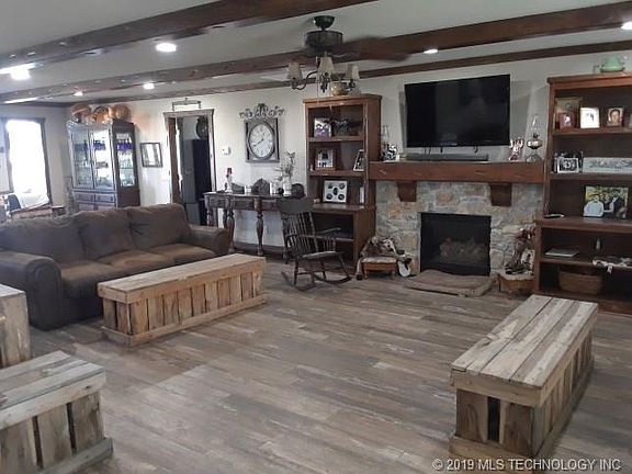 Spacious home on 10 Ac. Lg kitchen w island and huge pantry. Additional 10 -70 acres available (price will be negotiated). Downstairs master bedroom with 5x5 tiled shower w/ 2 heads, 6' jetted tub and double sinks. 25' x 18' game room. Guest house/mother-in-law suite with full kitchen and bath, 2 bedrooms and a loft (1200 extra sq ft, may be rented out). Stone gas fireplace. Upstairs are 3 bedrooms, office and 440 sq ft extra room. Rm over garage has own bath & mini kitchen. Owner is a RE agent.