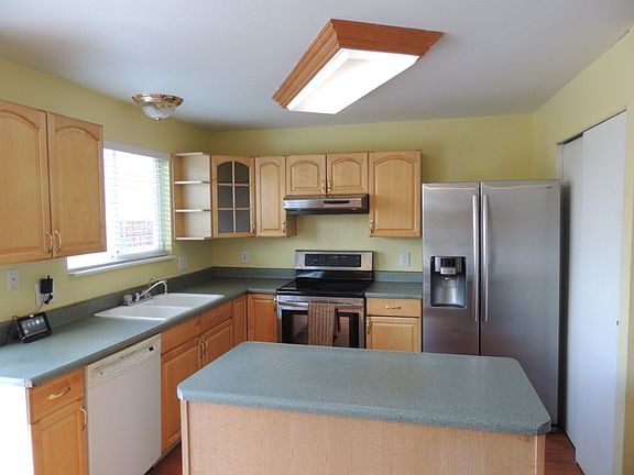 The main level features an oversized living room, 1/2 bathroom, kitchen with maple cabinets, a kitchen island, stainless steel refrigerator, stainless steel stove, new hood, dishwasher, and a cozy breakfast nook. Upstairs features: a large master bedroom, two additional bedrooms along with a full tiled bathroom. The finished basement includes a 3/4 bath and laundry room, large entertainment room with fireplace and storage area. Step out back and sit out on the newly installed oversized patio. Easy access to school, shopping and restaurants. Quick close and possession. Call and schedule your showing today!