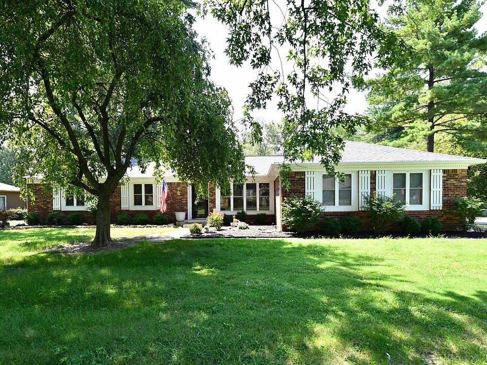 Sundrenched & Updated 4 BD/ 2 BA Ranch in the established neighborhood of Windsong in Center Grove boasts an open concept & beautifully remodeled Kitchen with granite counters, custom cabinetry, stainless steel appliances, and a large island. Home abounds with custom woodwork, a wood burning fireplace, updated bathrooms including custom tiled showers, a laundry area w/ raised platform, a half acre fenced yard, 2 car attached garage, sizable barn, and NO HOA. This home is the perfect fit & close to all area amenities of Center Grove!