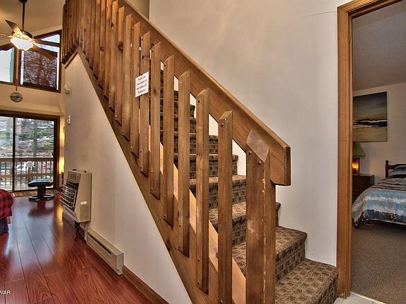 TURN KEY, ALL FURNITURE NEGOTIABLE Immaculate, spotless bright and airy contemporary with Beautiful Hardwood Floors, Fireplace, 4 seasons room with sleeper sofa, large spacious loft, private back deck that's within walking distance to the Golf Course, Lodge, Restaurant, cocktail lounge, Indoor Sports Complex, Outdoor Sports Complex, miniature golf, game room, exercise room and more. Whether you're on vacation or a primary resident you can walk to the amenities or just enjoy watching deer in your wooded backyard. Master bedroom on main level, loft area (extra sleeping area with closet)home sleeps 8 people comfortably, new appliances, bathroom on both floors. ''The home is solid with 2x6 frame construction.