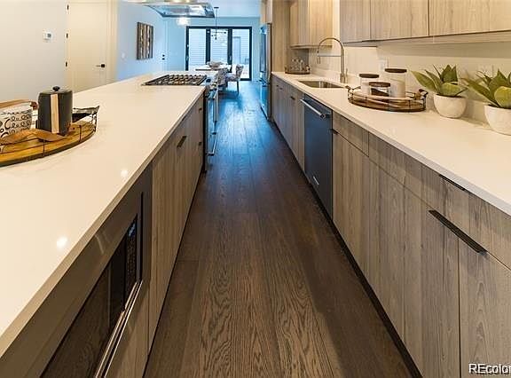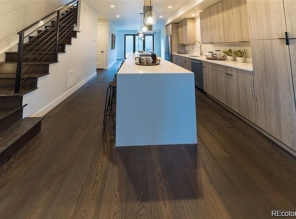 Just steps from El Jefe, Bacon Social House and dozens of great spots in the heart of Sunnyside...this stunning townhome is a short walk to the new light rail stop and all of Denver's hot spots!!! With over 1,800 sq ft, all 3 levels are bathed in natural light from the large windows throughout and since it was recently constructed it feels brand new inside. Beautiful hardwood floors lead through the home to a gourmet kitchen that would make any chef feel at home with high-end KitchenAid stainless steel appliances, quartz countertops and rich cabinetry. Both bedrooms are spacious, but the highlight is the oversized master bedroom which features a huge en-suite bathroom and tons of storage in the walk-in closet. Another highlight is the roofdeck which has amazing views of from every angle and the perfect setting to enjoy all four seasons in Colorado. The townhome also features a large back yard and full-sized 2-car garage to store all of Colorado toys (bikes, skis, etc.).