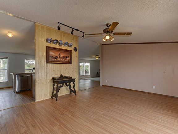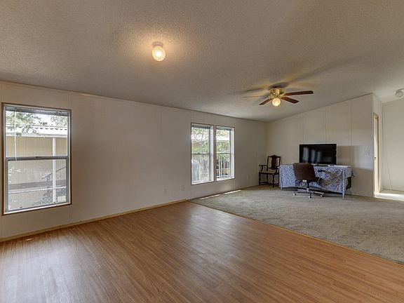 New flooring, Carpet & paint inside. Separate living room and family room. 3 bedroom split plan with large open island kitchen and inside laundry. A/C which is a rare find for a mobile home. Spacious master bath, and large master with walk in closet. FHA and VA approved.