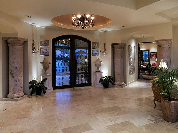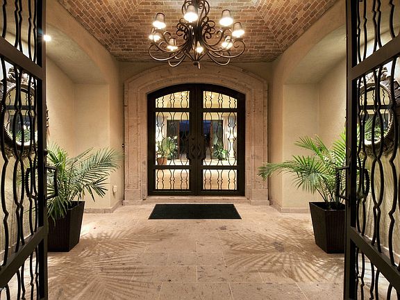For more information on this property, contact the Listing Agent, Christine and Russell Long at (520) 529-1116 or longs@LongRealty.com. Outstanding 2008, 6602 sqft + all masonry stucco Mediterranean masterpiece designed by Simmons Home Designs in gated catalina Foothills Estates #10. Located on a 2.22 acre cul-de-sac lot, this five bedroom+den/office home offers brick and native stone driveway, massive iron entry gates with domed foyers, high ceilings and windows with lots of light, 24'' travertine floors and 8' alder doors throughout. Gracious living/family room combination, true gourmet kitchen with Sub-Zero and Wolf appliances, expansive center cooks island, granite counters and adjacent family room with fireplace and entertainment wall. 900 bottle climate controlled wine cellar, cantera stone columns, fireplace surrounds accents and floors, glorious master suite with exercise room and decadent master bath.