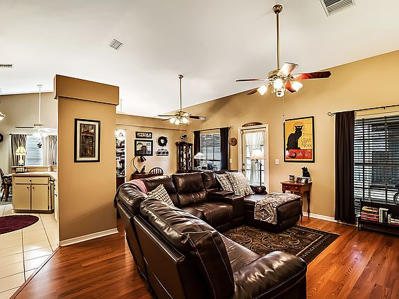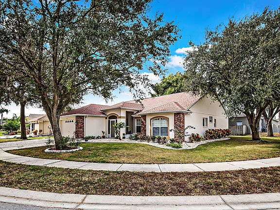 This adorable 3 bedroom / 2 bath + den home with 2-car garage sits on a corner lot in the tranquil neighborhood of Millpond Estates! Beautiful trees surround this home and community adding plentiful shade to keep your home and yard cooler in the summer. Step inside and you will notice the high vaulted ceilings in the Living Room that opens out to an oversized screened-in tiled patio perfect for relaxing and taking in the fresh air while enjoying your morning coffee. Open kitchen is equipped with new Stainless Steel Appliances which include refrigerator, dishwasher, range and built-in microwave. Reading nook/den located off the living room adds additional bonus space if you need an extra room for an office. Master bedroom includes en suite bathroom with double sinks, step-in shower, linen closet and a large walk-in closet with built-in shelving. Spacious Laundry room includes the Washer/Dryer (washer is NEW) and pantry. Whole house security alarm system included. NEW ROOF. House is conveniently located in close proximity to the community pool and clubhouse. Such a great neighborhood and location with excellent schools, close to shopping and short drive to beaches. Welcome home!