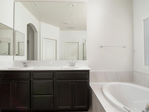 John Balfanz Homes at TUSCANY, this 2100 plan with Spanish elevation and 3 Car Garage offers 4 bedrooms, 2 1/2 baths, great room, wood look tile flooring, open kitchen with large island, quartz countertop, stainless steel appliances, 2 faux wood blinds, landscaped front AND back yard, covered patio.