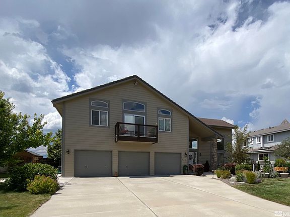 This Hidden Valley home is a must-see! Watch brilliant NV sunsets give way to the twinkle of downtown lights in the distance from the expansive rear deck. Watch the sunrise from one of two primary-suite private balconies. Located across the street from Hidden Valley golf course and backing up to a year-round waterway and vibrant wetland area, this home has long views in every direction. See extended remarks., Inside you'll find a tahoe-style floorplan with kitchen/living/dining great room concept and primary suite on the second level. Light & bright feel, bringing the outside in. Primary suite has 3-sided gas log fireplace & jetted tub. Main level with second living space and direct access to backyard, two bedrooms, full bath & dedicated laundry rm. Potential for multi-gen setup or separate/non-traditional living spaces. Newer LVP flooring & paint. Ample driveway space, 3 car garage w/ one pull through bay w/ concrete pad behind. New backyard fence. HOA amenities incl tennis court & seasonal pool/spa. Whole house water filtration system. Automated retractable awning w/ wind sensor. 12x12 storage shed. Buyer to verify all. Agents see private remarks.