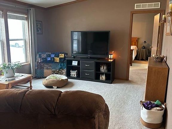 This 4 bedroom, 2 full bath home sits on 2 acres and features a family sitting room along with a separate living area, spacious bedroom closets, one level living and an open floor plan. Build your dream deck to enjoy your backyard! This property also boasts lots of storage with a three stall 32x40 finished and heated garage WITH AN OFFICE ATTACHED! This would be great for working from home, hobbies or even more storage. Other features include an oversized approach for trailers easy access, home and yard spigot, storage shed and cement apron/sidewalk. Come visit today!
