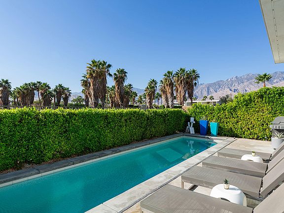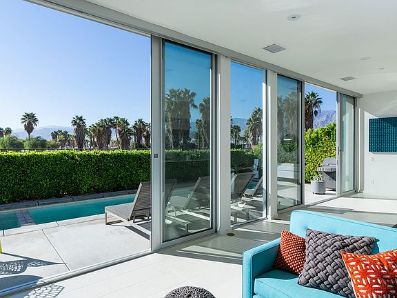 Enjoy fairway living and mountain views with privacy in the gated golf community of beautiful Escena. Whether you play golf or not, you'll love the ''Panorama'' floor plan designed by famed architect Anthony Poon and built by the premier Alta Verde Group in 2014. This stunning modern contemporary home is designed for seamless indoor/outdoor living at its finest! The oversized kitchen/living room/dining room are perfect for entertaining guests, with floor-to-ceiling Fleetwood sliders that open up to your private backyard oasis. Mature hedges surround the perimeter of the pool and spa area, providing complete privacy for you and your guests. Inside you will find 3 large ensuite bedrooms - the 3rd with large sliding doors allows the space to also be used as a den or office. High-end finishes throughout give this home the ultimate luxury feel. Other amenities include an outdoor mister system, salt water pool, water softener, firepit, automatic blinds, dual zone HVAC, and owned solar. All of this within the security of a guard-gated golf community with low HOAs of $180 per month where you own the land. Make this indoor/outdoor entertainers delight of a home yours to enjoy!