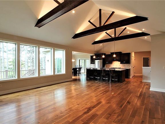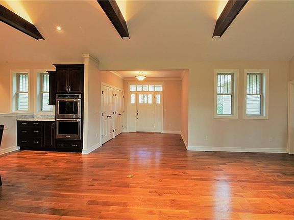 An exceptional Ranch home you'd be proud to own. Custom built luxury ranch with stone front by Paul Fowler secluded on 1.34 acres and surrounded by mature pines. From the moment you enter you will just love the open floor plan which features: Catheddral Ceilings W/Exposed lighted beams, beautiful white oak floors, fireplace, granite countertops throughout, custom lockers! Elegant Cherry Kitchen W/Breakfast-bar, Stainless Appliances - Undermount & Pendant Lighting with Tiled Backsplash! Dining Room has beautiful views W/ slider to large deck. Master Suite W/Jucuzzi Tub + Walk in Shower + Double Vanity + Slider to 4 Season Sunporch W / Adirondack Like Views. Beautifully Finished Walkout Basement like no other W / Large Family Room + Game Room + Workout Room + Inlaw Suite W/Ceramic Bath!