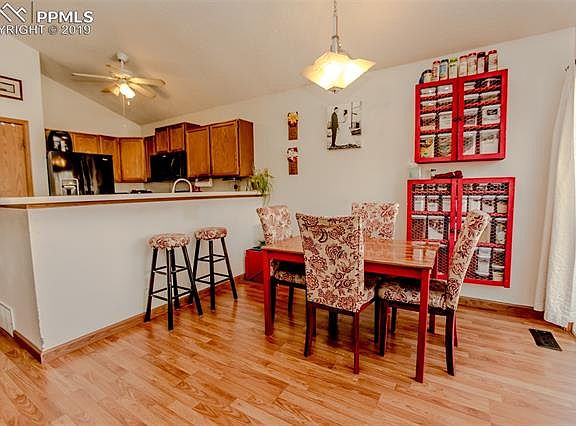 This cute home sits in a quaint neighborhood with easy access to both Academy and Powers. The open floor plan allows for lots of light and nice flow. The dining area opens up to a large deck and treed back yard. The master bedroom is on the upper level and opens to the main bathroom. This home feels larger than it is, with 2 living spaces and 3 bedrooms. The deck is being stained, back of home being painted as well as a new roof and gutters.