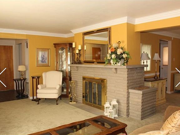RANCH STYLE HOME W/ADDED HEATED SUN ROOM. Foyer w/guest closet leads to great/living room sized to accommodate an array of furniture, stone fireplace and sunlit picture window. Dining room is positioned to extend the table for family gatherings - both rooms have custom sheers/drapes and deep painted crown molding. Freshly painted kitchen with all appliances and space for your favorite bistro table...door accesses a 25x10 sunroom w/4 skylights and sliding door onto level rear yard and circular patio. Versatile lower level game room w/2nd fireplace and adjoining room suitable for den, exercise or computer work area. Storage rooms + 3 cedar closets for all your needs. Laundry room w/washer and dryer and laundry chute. Pull down attic stairs. Hardwood beneath LR-DR-3 bedrooms.