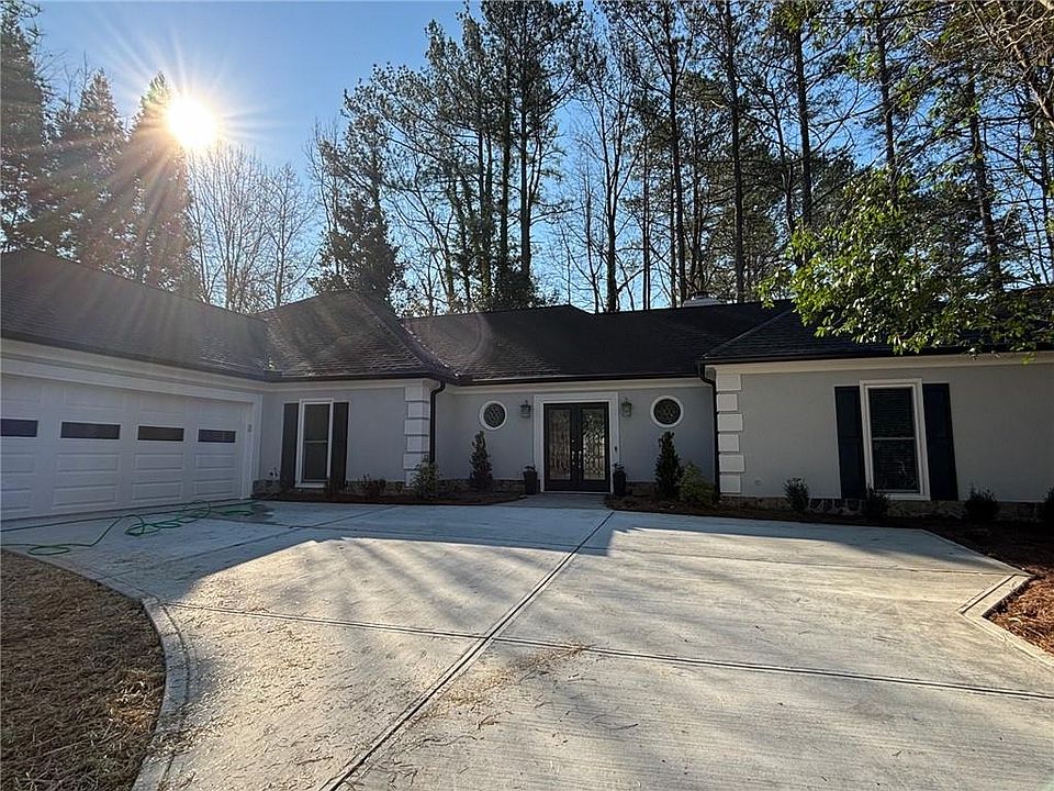 Beautifully Updated 3 bed, 2.5 bath ranch in one of East Cobb's Most Desirable Neighborhoods...Hampton Woods! Top Rated Schools (Mt. Bethel, Dickerson, and Walton High). From the gorgeous curb appeal (New Driveway and New Landscaping) to the beautiful interior finishes, you will love this cute, cozy ranch home. The new upgrades are too many to list them all - fresh new paint inside and out, new flooring throughout, all new bathrooms, new driveway, new light fixtures, new faucets, new HVAC, etc. Step inside the double door front entry to a spacious den featuring a fireplace. The master bedroom is off to your right featuring a beautiful new master bath. The master bath has designer tile, new dual vanities, new quartz vanity tops, new shower w/ gorgeous glass frame, new faucets, new lighting, etc. Head down the hall past the new half bath and new laundry room into the kitchen. The kitchen has tons of cabinet storage space and beautiful white and gray cabinets, stainless steel appliances (including stainless steel double ovens), kitchen island, quartz countertops, new stainless steel sink, new flooring, etc. Don't miss the fantastic Sun Room out back to relax and entertain. There are no steps or stairs to get into or around this home, so super easy to move around. The two additional bedrooms have new paint, new carpet, new lighting and share a beautiful new full bathroom. There's a spacious dining room to host all of your family gatherings, and a private backyard to enjoy. Level lot with 2 car garage. The home is a short 1 minute walk to the neighborhood pool, tennis courts, pickleball, etc. This neighborhood has it all. Must see!