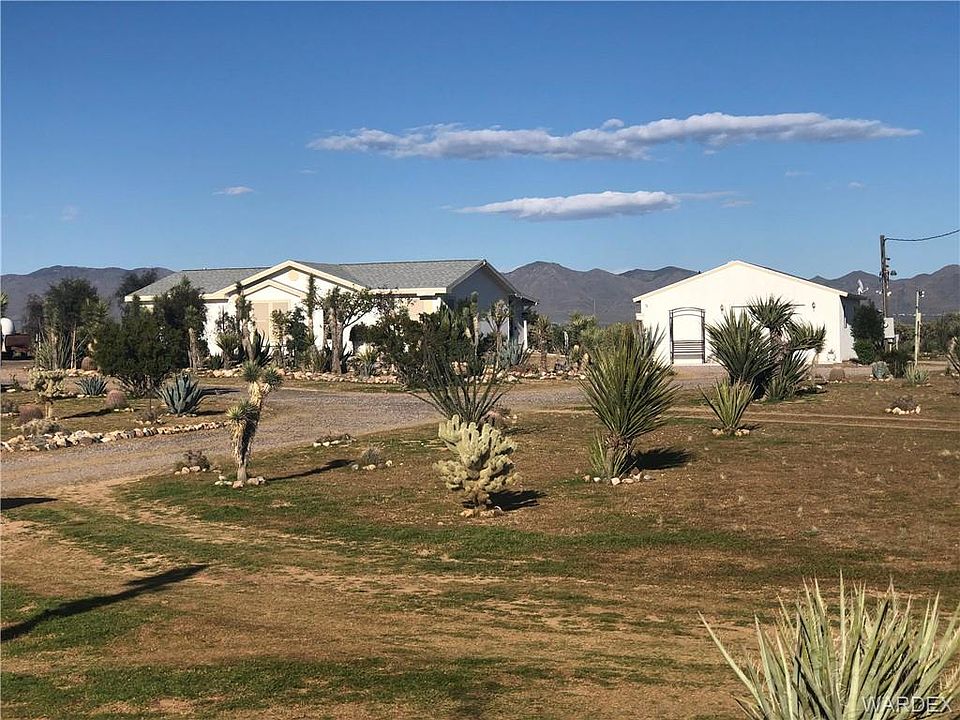 THIS BEAUTIFUL 3 BEDROOM 2 BATHROOM SPLIT PLAN HOME IS SITUATED ON A FANTASTICALLY LANDSCAPED 2.34 ACRE PARCEL THAT INCLUDES 70 JOSHUA TREES. THE HOME WAS RE LEVELED IN 2017 AND FEATURES A STAND-ALONE REAR COVERED PATIO. HOME AND GARAGE WAS PAINTED IN 2015 AND THE BOTH ROOFS WERE REPLACED IN 2017. THE WATER SYSTEM INCLUDES TWO ABOVE GROUND TANKS TOTALING 3600 GALLONS WITH A NEW WATER TRANSFER PUMP AND NEW PUMPING TANK IN THE GARAGE. THE GARAGE HAS A FULL BATHROOM AND ITS OWN PROPANE HEATER AND ELECTRIC WATER HEATER. PROPERTY SECURITY CAMERA SYSTEM IS INCLUDED. THE KITCHEN HAS A NEW FAUCET AND BRASS CABINET HANDLES AND SWITCH PLATES.