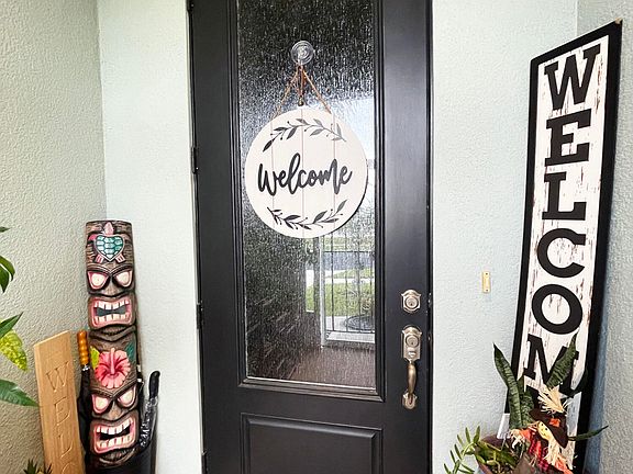 Screened in and cozy entryway brings you into the spacious foyer and open floor plan in this 2017-built concrete block home with high-ceilings. Tile throughout, with soft and lush carpet in spare rooms and vinyl plank flooring throughout master bedroom and master walk-in closet. Open and functionally beautiful kitchen with Island, oven, fridge, overhead microwave, gas stove-top range, dishwasher, pendant lighting, and espresso cabinets with crown-molding. Master Bedroom has newly installed vinyl plank. Privacy Fenced-in backyard. Bathrooms have Listello wall tile/trim and upgraded Master shower. Spacious shelving available in garage, tankless gas water heater, Washer/Dryer, Security System. Internet is included through June 10, 2024! NO SMOKING/OWNER WILL CONSIDER SMALL ANIMALS. Non-refundable Pet Deposit Required
