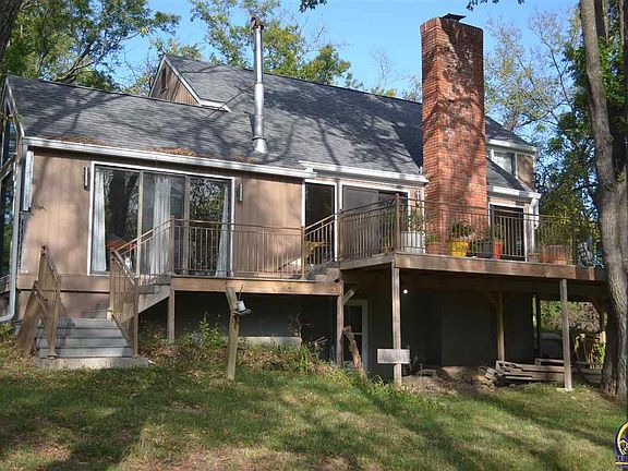 Unique opportunity to live on the most amazing 18 acre lot in the Topeka area! Don't miss out on this 3 bed 2 bath story and a half home, that has been tastefully updated on the main floor. This home features a large outdoor deck to sit and enjoy the beautiful scenery and wildlife. The lot has two ponds, and four buildings, a small shop, horse barn, "car barn" , and a cool hide away fishing lodge. The home needs some finishing touches to make it to the finish line but being sold as is.