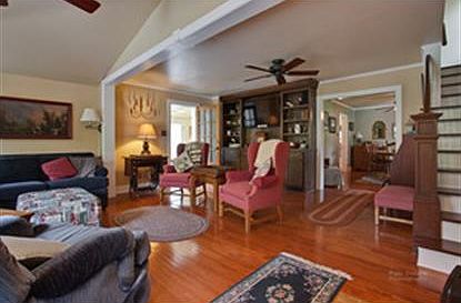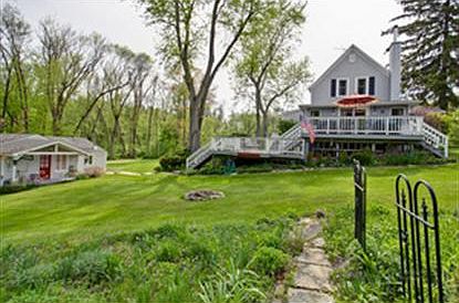 Storybook farmhouse set on a 1.7 acre private wooded retreat. Masterfully crafted custom woodwork trim and built-ins. Beautiful sun room w/ hardwood floors, vaulted ceiling, gorgeous views. Wood burning stove in living room w/ french doors out to 2 levels of deck for outdoor entertaining. Shed w/ playhouse. 2.5 car garage plus 24x10 workshop w/wood burning stove. Walking trail. Truly unique property. Come see.