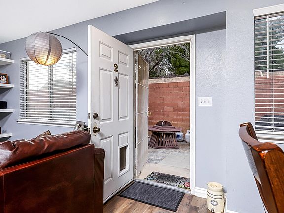 2 Bedroom Condo in gated Marbella Villas near AV College. This home features laminate wood flooring downstairs and newer carpet upstairs. The livingroom has a wet bar and gas fireplace. There is a private, gated courtyard with pavers and landscaping. Both bedrooms are masters with walk-in closet, full bath, and ceiling fans. The community has a pool, spa, tennis court, rec center, fitness room, green belt, and play ground. Water and trash is included in HOA.