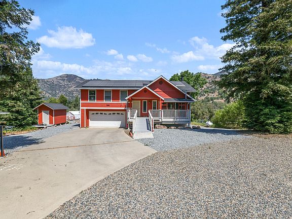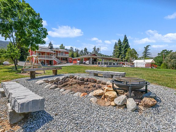 This1.9 acre property is a fantasy land set up for the ultimate in entertaining family and friends.Large outdoor kitchen, tree house, oudoor bunk tent ,ropes course and so much more. Beautiful pool recently redone in pebble tech, waterfall and fenced in patio. There is a free standing pool house with shower, toilet and sink. Planted are 40 fruit trees and a fenced garden in above ground tubs Close to the Kaweah River you can sit on one of many decks and listen to the sound of the water. The 1927 sq.ft. home is a split level built for privacy. Stepping up to the master bedroom is a loft area perfect for library,sitting room or home office. Sliding glass door leads out to the balcony overlooking the grounds and High Sierras. The gourmet kitchen has been renovated with rustic hickory custom cabinets and state of the art appliances. Bottom floor consists of two bedrooms with walk in closets and a bath. Two car attached garage, numerous out buildings and so much more. Come for a tour!