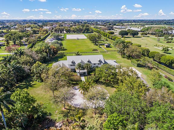 Spectacular 10 acre farm with two barns, 15 stalls total, staff quarters, large all-weather arena, round pen, plenty of turnout with 7 large paddocks plus a beautiful riding field. Home completely redone by one of Wellington's top builders and top interior designers, this home is sure to please. Too many state of the art extras to list include impact glass, and gas range. Farm shows beautifully you will not be disappointed.