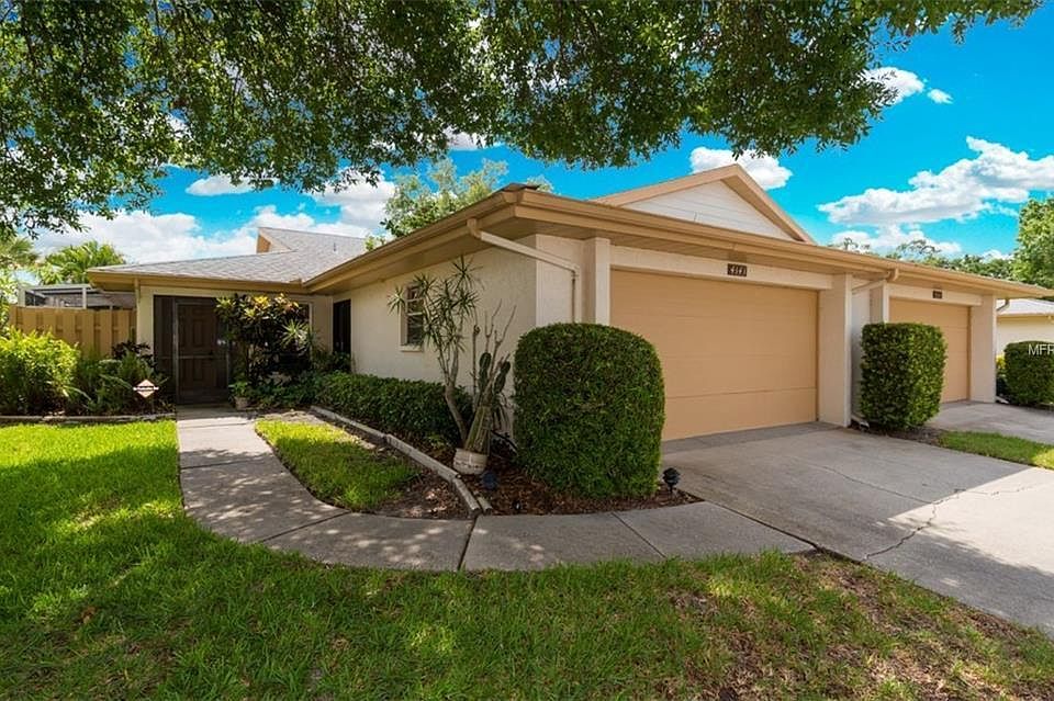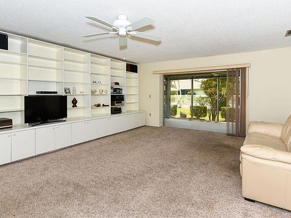 This SPACIOUS VILLA, with a GREAT ROOM and Dining area combined has enough room for the Custom Built-ins designed for Books and Storage and your sofa and chairs! The kitchen has loads of Cabinetry, Newer Refrigerator, Microwave and Smoothtop Stove/Oven and there is plenty of room to sit at the table and enjoy your morning coffee! The Enormous Master Bedroom looks out on the Sparkling Pool and you have a private entry onto the Enclosed Lanai. The Master Bathroom is handicapped accessible. The Lanai is like having an extra room for Year Round Use. There is an Additional Private, Screened Lanai for Plantings and bringing the outdoors in with Abundant Sunshine. AC New in 2011. Roof Replaced 2003 with 40 Year GAF Select Dimensional Fiberglass fungus resistant Shingles. Mature Landscaping provides wonderful shade during those Hot Summer Days! Another plus is the Hurricane Shutters, 2 car garage and this is a PET Friendly section and No Age Restrictions! Located on one floor and Centrally Located to Beaches, Dining and I-75