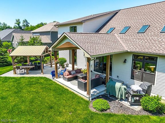 Stunning “like new construction” - 2020 spec home built by award winning Shultz Design & Construction gives you all the bells and whistles in prime King’s Ridge location within Green LSD! Two-story with first floor primary suite, 4 bedroom/3.5 bathroom/3 car garage modern floorplan with private office for a total of 3600 finished SF. Entering through the front door (w/ 10’ foyer ceiling height), you’ll immediately notice expansive natural light illuminating the open concept eating/dining/living room through craftsman-style trimmed Andserson windows with transoms as well as four Velux skylights. 9’ walls, vaulted to 14’ (at beam) with 8’ interior doors make this main living space feel elevated and luxurious while maintaining spacial intentionality. Kitchen features custom-made amish cabinetry, quartz countertops, gas range, apron split sink, and custom vent hood. First floor primary suite features walk-in closet, double sinks, fully tiled zero-clearance shower and attached throughway laundry room. Upstairs is two large bedrooms with jack and Jill bathroom - 4th bedroom is in the basement w/ egress along with 3rd full bathroom. 9’ basement walls make this space perfect for entertaining along with wet bar and home theater. Remaining unfinished spaces have been repurposed into workout areas/additional storage. Backyard is an oasis! Attached covered porch, detached pergola, and sunken hot tub with concrete surround. Comes complete with w/d, tankless hot water tank, hot tub, pergola, and theater seating included. This is a rare opportunity to have it all at this price - schedule a private showing today!