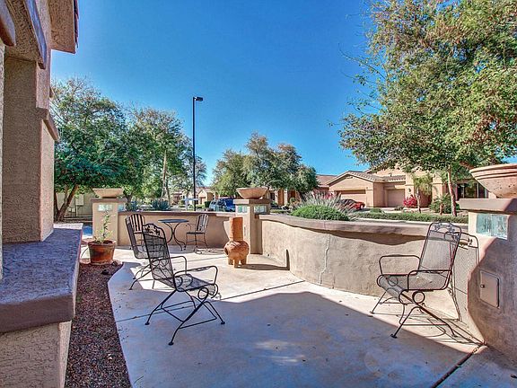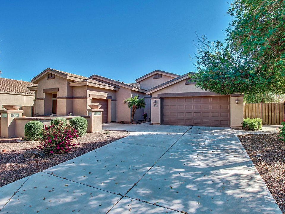 Lovely single level home in coveted Power Ranch. Large entry way leads to formal living and dining rooms. Open kitchen features ample maple cabinets w/pullouts, stainless appliances, solid surface counters, large island w/breakfast bar and eat in kitchen area while opening to large family room. French doors lead to lush backyard boasting flagstone bar top with built in BBQ & firepit to make AZ entertaining a delight! Split floor plan - master with rear french doors & large walk in closet. Separate office with attached shelving and french doors. Plantation shutters & blinds throughout home. Freshly painted! Interior 2/2017, exterior 2015.
