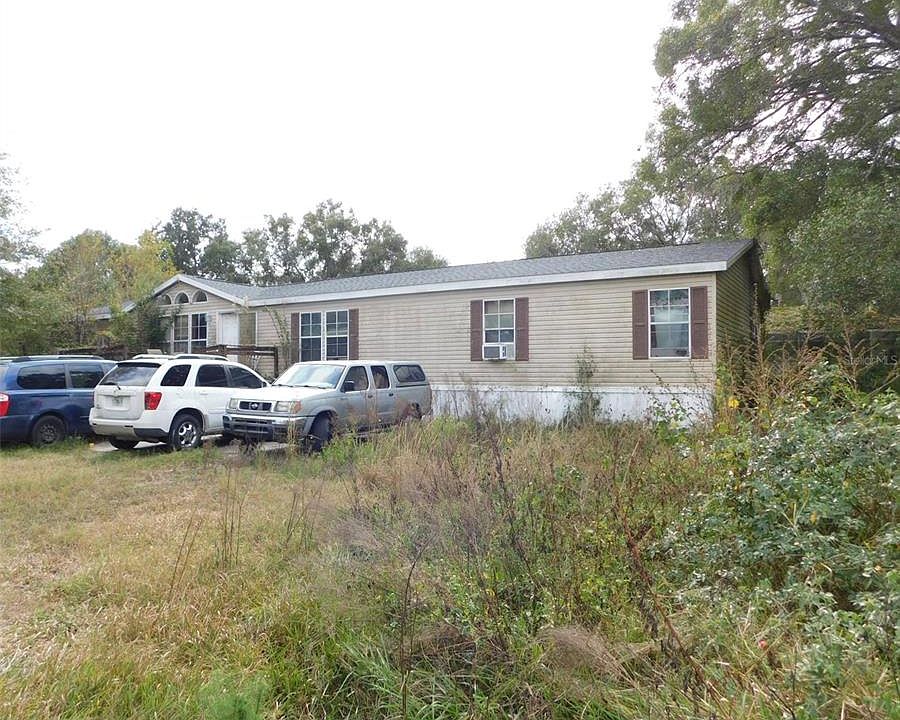 This 4-bedroom, 2-bathroom manufactured home built in 1998 is now available. Nestled on a 1 ACRE LOT! The Roof was replaced (2023), and the A/C is less than three years old. A little TLC will make this house a perfect home or investment. A spacious interior offers the perfect blend of comfort and functionality. The large kitchen features plenty of cooking space and an island. Gather around the cozy fireplace in the family room. Celebrate with family under the lanai of your enclosed pool area. What an excellent opportunity to create a space all your own. The front of the home features a generous wooden deck, and when you go to the back, you will see the lovely screened and enclosed pool area. The lot features a shed and a concrete pad ready to build another shed or create your own unique space. The seller is leaving approximately 50 boxes of Laminate flooring. Quick access to State Rd 54 and plenty of shopping and stores. This home offers Freedom and space. A country setting in the city environment awaits you at your future oasis. Did I mention the 1 Acre lot next door is also offered for sale as a separate purchase( T3487039).