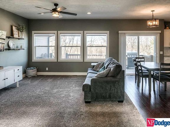 All electric Ranch home with main floor open concept. Three bedrooms, 2 baths, 2 car. Kitchen with granite counter tops and wood floors, all bathrooms feature granite counter tops, tile entry and mud room with drop zone. Laundry room conveniently located near kitchen & garage. Large master suite includes a walk-in closet, electric fireplace, 3/4 master bath with dual sinks. The unfinished walk-out basement has tons of potential with a 3/4 bathroom rough-in. Large back yard, partial fenced and the other part with play set. One cul de sac, gated community, Blair schools, easy commute to Omaha and Blair.