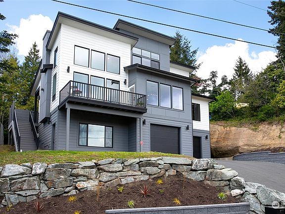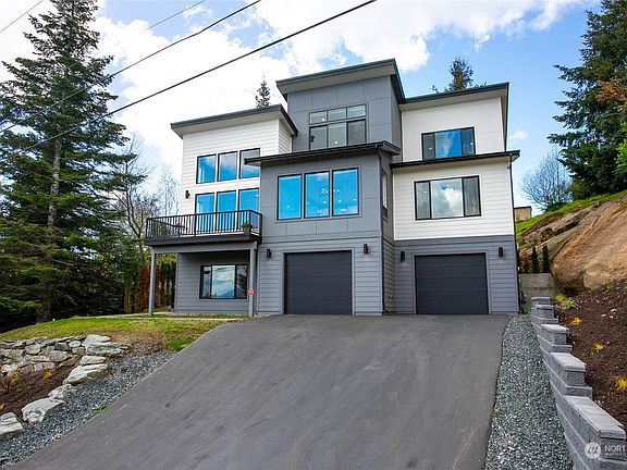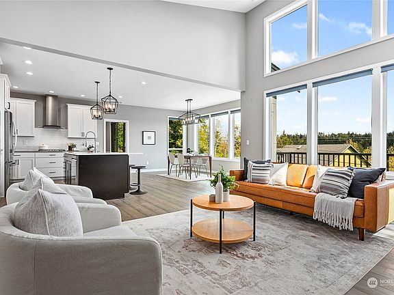 Experience luxury living in the desirable King Mountain neighborhood! The abundance of natural light and sweeping views from every room truly makes this home feel like a retreat. The open floor plan encourages you to gather around the kitchen, which would please any gourmet chef. Also located on the main floor is the beautiful primary bedroom suite. Upstairs, you will find the second bedroom, full bath, and bonus room which could be used as an office or third bedroom. The lower level is a fully finished daylight basement with 3/4 bath, making the perfect family room or MIL suite, with all the plumbing and electrical ready to go. The XL 2+ car garage provides ample room and is wired for an electric car charger. Ideal location, A/C & no HOA!