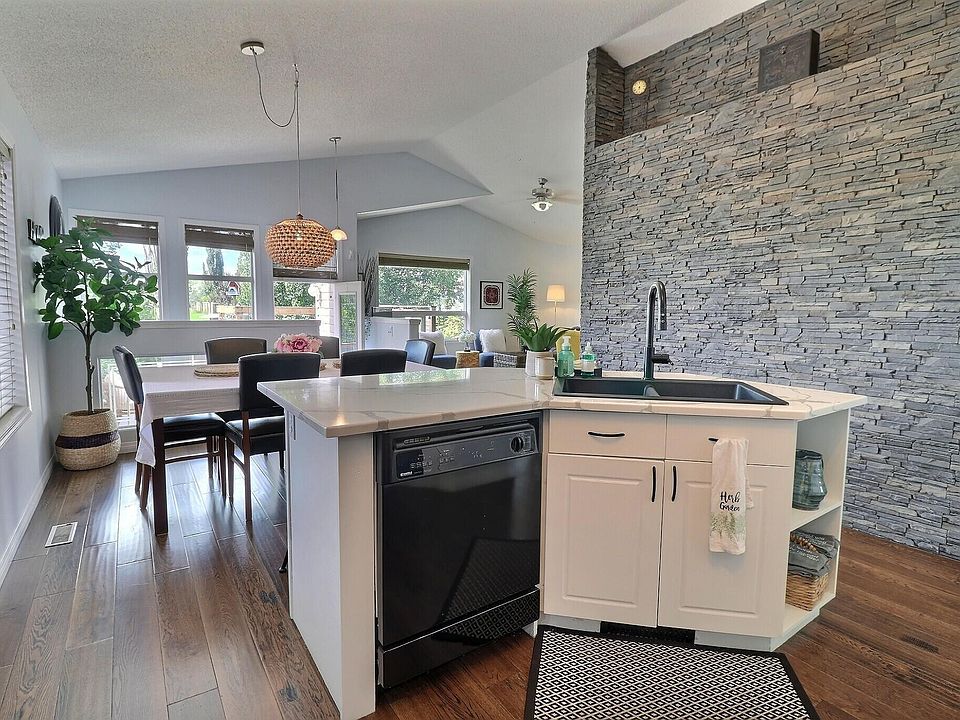 Beautiful Bi-Level in MacEwan with immediate accessibility to Anthony Henday! This home offers 2245sq ft in total including the lower level, vaulted ceilings and big windows that provide plenty of natural light. New shingles(2019), New Dryer (2024), New Hot-Water-On-Demand Tank (2025). NO SMOKING OR PETS EVER! Walking into the house, you are greeted by two sets of stairs and an open concept entrance with high ceilings. In the upper level you will find an updated kitchen, new engineered hardwood floors, a large dining area and cozy intimate living room all connected and flowing with the large windows through out. With 2 large bedrooms on the main level and the master bedroom one level up, you will find this property's layout provides privacy to each bedroom while keeping the living areas separate. The open concept lower level boasts a huge second living room, 4th bedroom, a full bath, plenty of storage under the stairs and a custom wine closet.