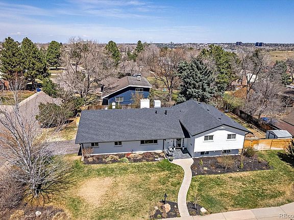 This desirable, move-in ready home located in the Cherry Creek Village North neighborhood of Greenwood Village offers a prime location with easy access to the Denver Tech Center and freeways, yet only steps away from Cherry Creek State Park and Reservoir, Village Greens Park, and highly rated Cherry Creek High School, Campus Middle School, and Belleview Elementary School. This beautiful family home boasts two master suites, plus another 3 bedrooms, 2 wood burning fireplaces (includes a cord of wood for you to enjoy next winter) and updated bathrooms throughout (including one with heated floors and a steam shower). Updated flooring, doors, trim, plantation shutters in all bedrooms, new boiler (2022), new water heater (2021), roof and evaporative cooling system (2016) and new exterior paint (2022). The exterior of the home has a beautiful combination of lawns, mature landscaping and lovely perennial gardens, an oversized patio room for 2-3 seating/dining areas with a custom motorized awning, raised beds, and a sprinkler system throughout. It also offers a corner lot with new fencing, new gates, a garden shed and a side load two car garage.