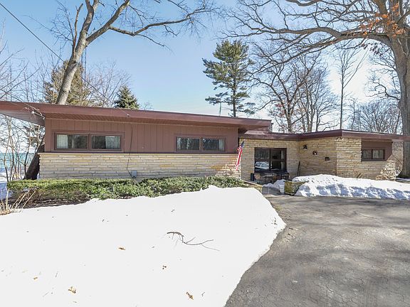 This home harkens of another era, right after World War II this home was built in 1949 overlooking Lake Michigan. This lannon stone ranch with over 1800 square feet on the first floor greets your guests with a quaint partially covered front seating patio flanked by lannon stone details. Follow the stone path around to the 37 x 11 patio overlooking the lake. Inside your just steps from an original stone fireplace, where the living area, formal dining room and den all have views of the lake through large windows. Master Bedroom Suite is set up with it's own bathroom. The split design has the other two bedrooms on the other side of the house sharing a full bath. This home is entirely vintage, be prepared to step back into a bygone era. Kitchen features large windows in eating area.