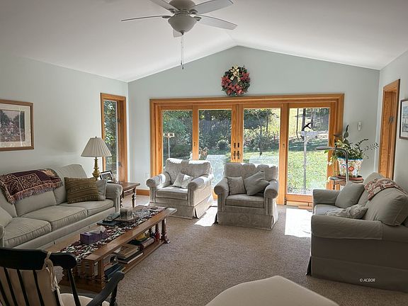 Tranquil & private 11+ ac with 3 BR & 3 Bath home.. Tranquil & private 11+ ac. This 3 bedroom 3 bath home is extremely well maintained & a 1 owner home. Walk upon the covered front porch, open the door & discover a bright gorgeous living room with large windows, stone fireplace & sliding doors going out to a beautiful back patio. Off the living is a formal dining that connects to the oversized updated kitchen with granite tops and a wonderful breakfast nook with bay window. Off dining rooms are another set of large sliding doors to back patio plus access to a finished 4 season sun room that is a must see. Down the hall are 2 nice size bedrooms, full hall bath plus a large master suite with master bath & walk in closet. Finishing out the 1st floor is an oversized laundry room and expanded garage for storage. Lower level is a finished family room with a Murphy Bed for extra bedroom & guest. Finishing out the lower level is a full bath and tons of extra storage on the half unfinished basement. Home has a new roof whole house generator plus 2 car attached garage & 2 car detached garage.