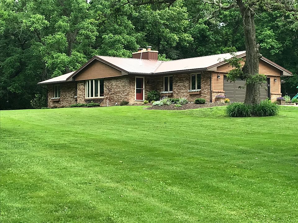 Tucked in 20 wooded acres, beyond the wrought iron gate and down the long , scenic concrete drive you will find privacy , abundant large / small game,gardening areas ,reliable internet & everything you need to be self sufficient .The brick ranch , steel roofed (new in 2014) home was remodeled in 2013. The home has hickory cabinets, quartz counter tops , a double sided fireplace,bamboo flooring, tiled shower,stainless appliances , vaulted great room, large bay window,6 burner gas stove, dim-able lights / ceiling fans w/remotes, Jack /Jill bath, casement windows,closet organizers.Outside you will find commercial grade gutters / downspouts, huge stamped concrete patio,buried LP tank & gas grill hookup,profess. landscaping. The excellent steel outbuildings include a wood shed, 40 x72 heated shop w/ 15 x 15 overhead door,concrete floor,kitchen,bath and office, Morton 24 x 16 w/concrete floor & an open sided 36 x 18 w/ concrete floor. This wooded Forrestville school property has it ALL !!