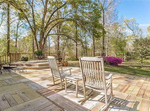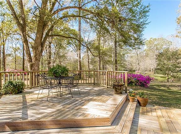 Don't miss this one! Just over 4 acres of beautiful property with a stocked pond, fruit trees (orange, satsuma, lemon, kumquat), oversize multi-level deck, desirable trees & bushes (Cypress, Magnolia, azalea, bamboo), gazebo & boat/RV metal cover with electric hook-up! Large workshop with roll-up door has it's own electric meter. Wireless electric dog fence around property boundaries. No carpet. Lots of kitchen cabinets! Formal dining room & eat-in kitchen area. Recessed lighting. 3 car attached carport.