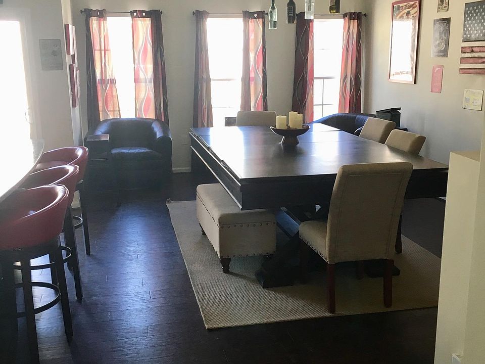Garage and 1 parking space, as well as neighborhood parking for guests. Great schools and friendly neighborhood. Spacious, modern home. The Third bedroom is the same size as the guest bedroom, it s being used as an office and is not pictured. Owner pays HOA and water bill