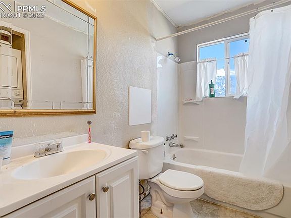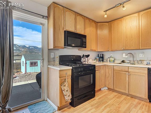 Absolutely STUNNING mountain views of Pikes Peak and the front range. Charming single-family home with 3 bedrooms, 2 bathrooms, a cozy living room with a gas fireplace, fully equipped kitchen, convenient laundry room, attached 2-car garage, and a beautifully landscaped backyard with a covered patio. This home is located in a friendly neighborhood close to shopping, dining, entertainment, and outdoor recreation opportunities. Studio in back yard included.