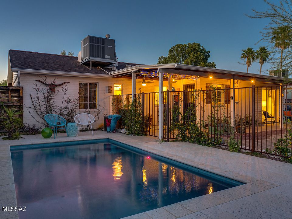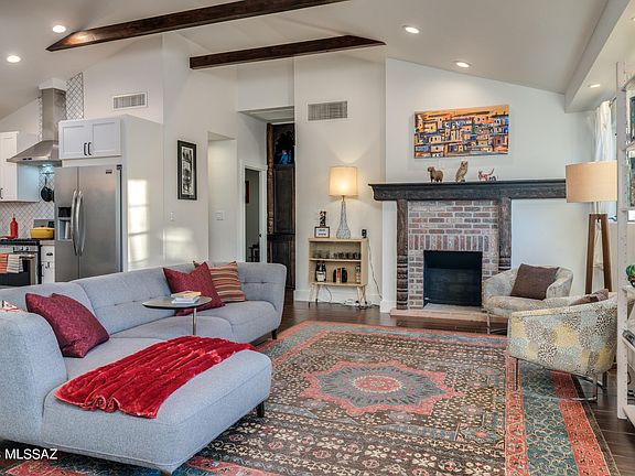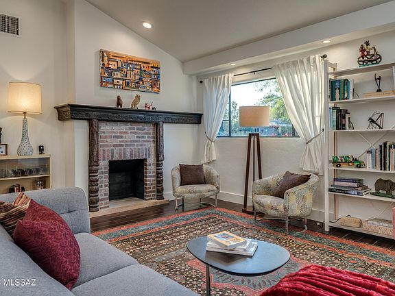 A rare find in Poets Square Neighborhood!A perfect opportunity to own a home in this progressive neighborhood.The recently remodeled 3bd/2ba house features wood-like tile floors,exposed beam ceilings,functional kitchen,breakfast bar,fireplace and more.Permitted/remodeled guest house boasts 400 Sqft. and ideal for short-term rental or even an Owner's Retreat. As for the outdoors living; the water harvesting cistern kept this backyard a perfect place to relax among blooming trees, unique cacti, and herb garden. Delicate butterflies and colorful birds visit this little Oasis year around. You & your guests will enjoy a dip in the new saltwater PebbleTec pool and the colorful light show after the sunset. Looking for convenience? Shopping,restaurants, schools U of AZ, Banner hospital within 2 mi