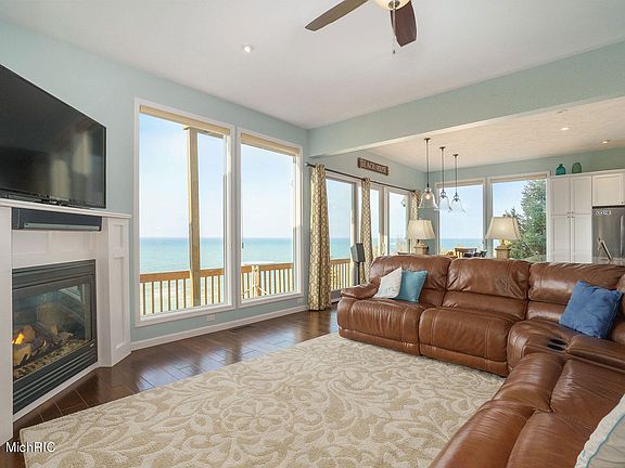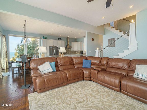 Completely remodeled in 2012 this home features captivating views of the water, including 90' of Lake Michigan frontage! This stately home provides a designer kitchen with center Island & Dining Area, open floor plan, 4 bedrooms and a stunning master suite that you'll never want to leave. 4 full baths a fire place on every level and a wet bar in the lower level. Spend your days on the grand patio with a fire pit where you can walk directly out to Lake Michigan or enjoy yourself on one of the many decks. The home sits on a hill and the views are incomparable as far as the eye can see in any direction. Watch the big Lakers come to Manistee port fr or the sail boats racing from Chicago to Mackinaw with their billowing sales! This is also a great investment home.