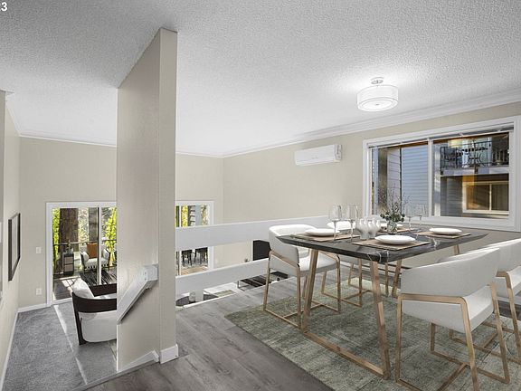 This charming 2-bedroom, 1-bathroom end unit condo is a true gem, nestled in a serene neighborhood that seamlessly blends convenience with tranquility. As you step inside, you find vaulted ceilings, creating a spacious and airy ambiance that invites natural light to fill the rooms. The sunken living room has large glass sliding doors that lead to a covered deck, creating easy indoor/outdoor living space, perfect for morning coffee, evening reading, or simply a space to unwind after a busy day. The open & airy feel extends to the dining & kitchen area upstairs, with a full glass door in the kitchen leading to the outdoor patio and letting in even more natural light. The two bedrooms provide a peaceful retreat at the end of a day, such a private & tranquil place to rest. Newer paint & flooring in unit, and all appliances, washer & dryer stay. Exterior updates include the following- new windows and sliding doors, siding, exterior paint, roof, reinforced decks, concrete patios, an iron fence, and a resurfaced pool. Covered parking space included, along with ample guest parking throughout the complex. With its prime location near parks, schools, freeways, and a long list of amenities, and its perfect blend of modern design and natural beauty, this delightful condo is ready for it's new owner!