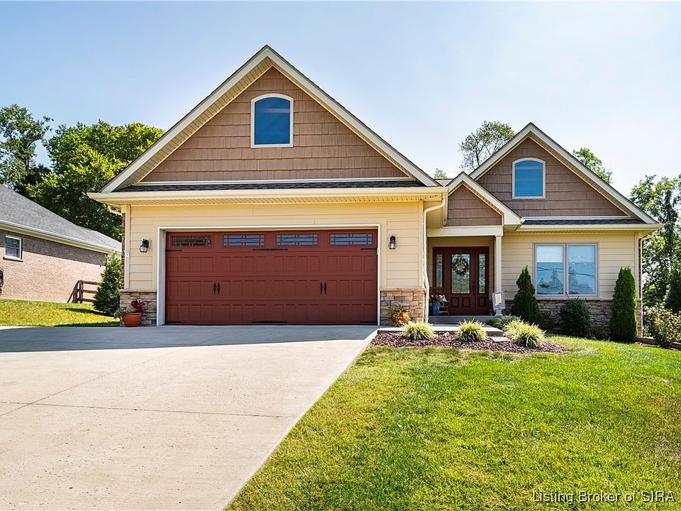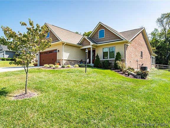 Why build when you can have ALL THIS!? Custom Built by Witten Builders, One Owner, Built just 4 years ago! INCREDIBLE FLOYDS KNOBS LOCATION! Situated on a PRIVATE, Wooded 1/2 Acre Lot, This 2 Beds, 2 Baths BEAUTY is SURE to please! OVER 1700 sq ft of FANTASTIC Living Space, NO HOA FEES, PLUS 11x10 Screened/Glassed Professionally built 3 Seasons Room! Great Curb Appeal, LOTS of Luxury Finishes! Split Ranch Plan, Lrg OPEN Living Rm, Beautiful Engineered Hardwood Flooring. HUGE Kitchen, QUARTZ Tops, Lrg ISLAND BAR w/Seating, TONS of Custom Cabs, Soft-close, Dovetailed Drawers, STAINLESS APPLS. and PANTRY! Custom Built-in Desk/Workspace, Lrg Eat-in Dining Area! Lrg Owner’s Suite, TONS OF NATURAL LIGHT, Adjoining Bath w/Custom Tile/Glass Shower, Dbl Vanity and HUGE Walk-in Closet! 2nd Bed w/Private Bath, perfect for guests. Lrg Laundry/Mud Rm w/Cabs, Folding Area, and Utility Sink. You will LOVE the 3 Seasons Room (Added in 2021), Perfect for Relaxing, Reading, and taking in Nature! Lrg Trex Deck, 12x10 Shed Stays, Lrg 2 Car Garage, and Fenced Yard!! Convenient to Award Winning FC Schools, Restaurants, Coffee Shop, and Expressway! Hurry! Sq ft & rm sz approx.