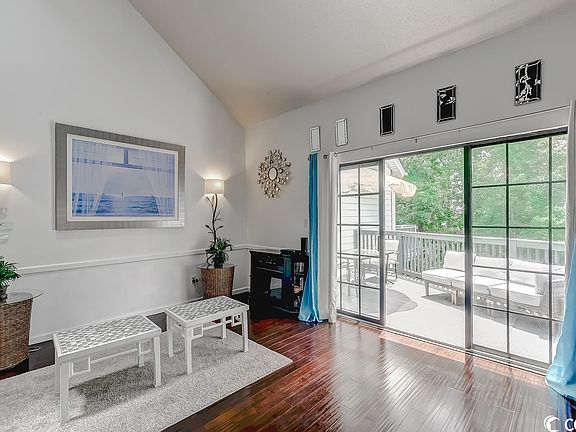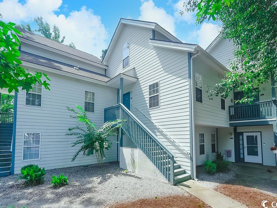 Classic and chic. Adorable condo in The Spa at Little River. Flooded with natural light, this beauty has been upgraded enhanced by the high ceilings and sold furnished. Granite countertops in kitchen and baths. Stainless steel kitchen appliances, vaulted ceilings and large balcony with wooded view. Kitchen features spacious island breakfast bar, beautiful overhead lighting fixtures and lots of cabinet space. Living room and dining area features open concept, bamboo wood flooring, electric fireplace and vaulted ceilings. Primary bedroom and bath on main level. Beautiful loft bedroom upstairs with closet and full bath. Large attic area in upstairs loft bedroom closet along with additional storage space under the stairs. Health spa and fitness center is within walking distance of The Spa and has olympic size indoor and outdoor pool for a fee. All of this and only minutes to North Myrtle Beach, Sunset Beach and Ocean Isle Beach. Golf courses close by, dining options are abundant and medical facilities minutes away. Enjoy our mild year round climate and all the Myrtle Beach attractions in the area. Welcome home.