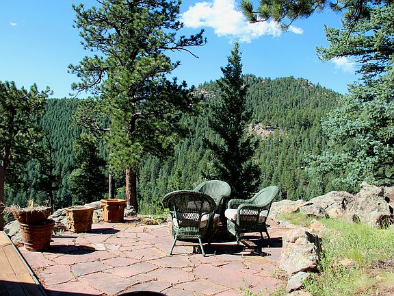 Peace and Serenity await you at this amazing 4bed/4bath/4973sf home rebuilt in 2003 on 1ac in the 10 home enclave of Stone Cliff Estates tucked high above Upper Bear Creek in Troutdale. Walk to open space, lake, downtown, and stores or simply relax and breath fresh air on multiple decks and patios while listening to the river below. Wonderful privacy*Stunning Rock Outcroppings*Mountain Views abound and all this just 10min from I70. Move in ready condition! Huge gourmet kitchen with SS Viking Appliances. Main Floor Master Suite with luxury bath and king size walk-in closet having 2 sections, laundry area and hideaway office. Walk out basement is complete with a wet bar, entertaining space, access to patio, mud room with 2nd laundry hookup and a perfect guest suite that includes a 2 sided fireplace, sitting area and full bath. Free Water from well drilled 12yrs ago producing 10gal/min plus ease of public sewer system. Walk to Montessori or grab Bergen/Evergreen bus 9 houses away! Whole house Generac Generator just in case!