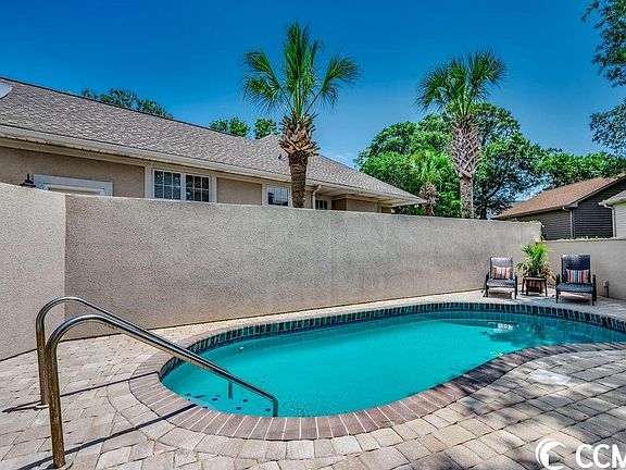 Welcome to this well-maintained 3-bedroom, 3.5-bathroom home nestled in the highly desired gated community of the Heights at Windy Hill. With its prime location east of Hwy 17, you can enjoy a quick stroll or golf cart ride to the beach, immersing yourself in the sun, sand, and surf. Home has an attached 2 car garage and a private pool with a large paver deck surrounded by 6’ solid wall. This turnkey property is sold furnished (with a few exceptions) offering a seamless transition into coastal living…even has a golf cart that is negotiable. Entering the home, you’ll find tile floor that extends down 2 hallways, in the powder room and through the kitchen. The eat-in kitchen features a vaulted ceiling that adds to the open and airy feeling, a breakfast nook, white appliances with a new dishwasher (2022), tall white cabinets adorned with top crown molding that provide ample storage space, and a pantry. The family room is a grand space featuring soaring 18' ceilings and an abundance of natural light pouring in through large windows, laminate floors, a gas-log fireplace (propane), a ceiling fan, and a door leading to the private pool deck. The primary bedroom and a half bathroom are located on the main floor, providing convenience and accessibility. This bedroom suite features a spacious walk-in closet, a ceiling fan, a large jetted tub, a separate shower, double sinks with a vanity area, a water closet, and carpet in the bedroom with tile floor in the bathroom. Upstairs, you'll find two additional generously sized bedrooms, each boasting a walk-in closet and its own private balcony. The first upstairs bathroom features a tub/shower combo, a water closet, a linen closet, and a vanity area. The second bathroom also offers a tub/shower combo, with a transom window above for added natural light. The home’s recent updates show the care and attention given to this residence. In 2022, the entire house underwent a fresh coat of paint, both inside and out, along with the replacement of fogged glass in several windows (which come with a 10-year warranty). In 2019, a new architectural shingle roof was installed along with a new downstairs HVAC system and a new hot water heater. All appliances convey with the sale including the side-by-side washer and dryer (1st floor) and the refrigerator in the garage. Step outside to experience the inviting pool and expansive paver deck. The chlorine pool was recently replastered in 2018, and in 2020, a new pump was installed and the deck pavers were resealed. In addition, a paver walkway was added from the front of the house to the pool area. Beautiful large river rocks grace the landscaping beds, while low-maintenance gravel rocks in the back of the house offer easy upkeep. Enjoy the beautiful park-like area with a gazebo in the center of the community. Golf carts, bikes and pedestrians can use the community back gate that leads directly to beach-front golf cart parking. You can even see the ocean from the back gate. Owners are allowed up to 3 pets. Home is in flood zone X and should not require flood insurance with most loans. Low HOA fees cover gate maintenance, road maintenance, and common areas. This home has never been rented. Enjoy all the shopping, restaurants and entertainment all around! Come see this beautiful beach paradise on the Grand Strand just a few blocks from the sandy shores of the Atlantic!