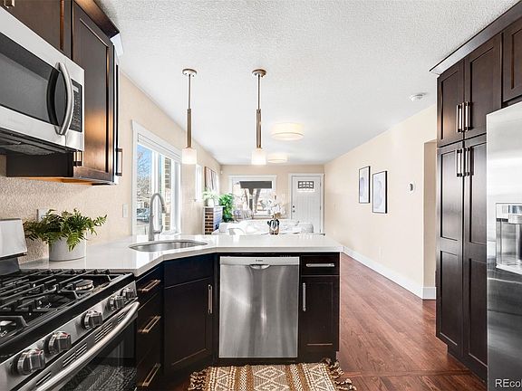 Welcome to 4344 Wyandot St, a beautifully updated home nestled on a quiet block in the heart of Sunnyside! This charming 3-bed, 2-bath bungalow perfectly blends historic character with modern updates. Step inside to a bright and open living space featuring hardwood floors, a cozy wood-burning fireplace, and large windows that fill the home with natural light. The updated kitchen is a chef’s dream, boasting quartz countertops, stainless steel appliances, a gas range, and a wine fridge—perfect for cooking and entertaining. Two spacious bedrooms and a full bathroom complete the main level. The fully finished basement offers valuable extra living space, ideal for a family room, home office, or play area. The highlight is the impressive bedroom suite, featuring a spa-like en-suite bathroom with a double vanity, a large walk-in shower, and a massive walk-in closet—rare finds in a bungalow of this era. Outside, the fully fenced backyard is designed for entertaining, with a covered concrete patio that’s perfect for hosting friends. The detached one-car garage provides space for parking and storage, while two additional off-street parking spots add convenience. The oversized lot is zoned to allow for an accessory dwelling unit (ADU) for future income potential or mother-in-law apartment. Located just steps from popular restaurants like Bacon Social House, El Jefe, and The Wolf’s Tailor, this home offers unbeatable walkability and easy access to parks, downtown Denver, the light rail station at 41st & Fox, and I-70 for quick trips to the airport or mountains. Don’t miss your chance to own a move-in-ready home in one of the best locations in Sunnyside!